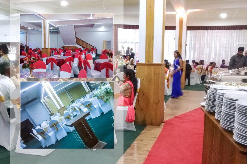 With exquisite style and taste, our banqueting service creates the perfect setting for any event. Special attention is given to the overall effect as to details, whether it is a stately banquet for a large number of a cozy gathering for a chosen few. Two AC Wedding Halls (500 +)with Drinking Area. ยป Engagements, Weddings, Home Coming, Seminars, Conferences, Birthdays, Get together.